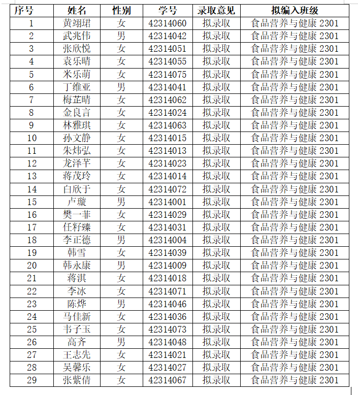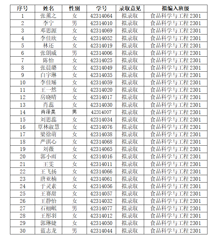 一、食品科学与工程专业学生名单