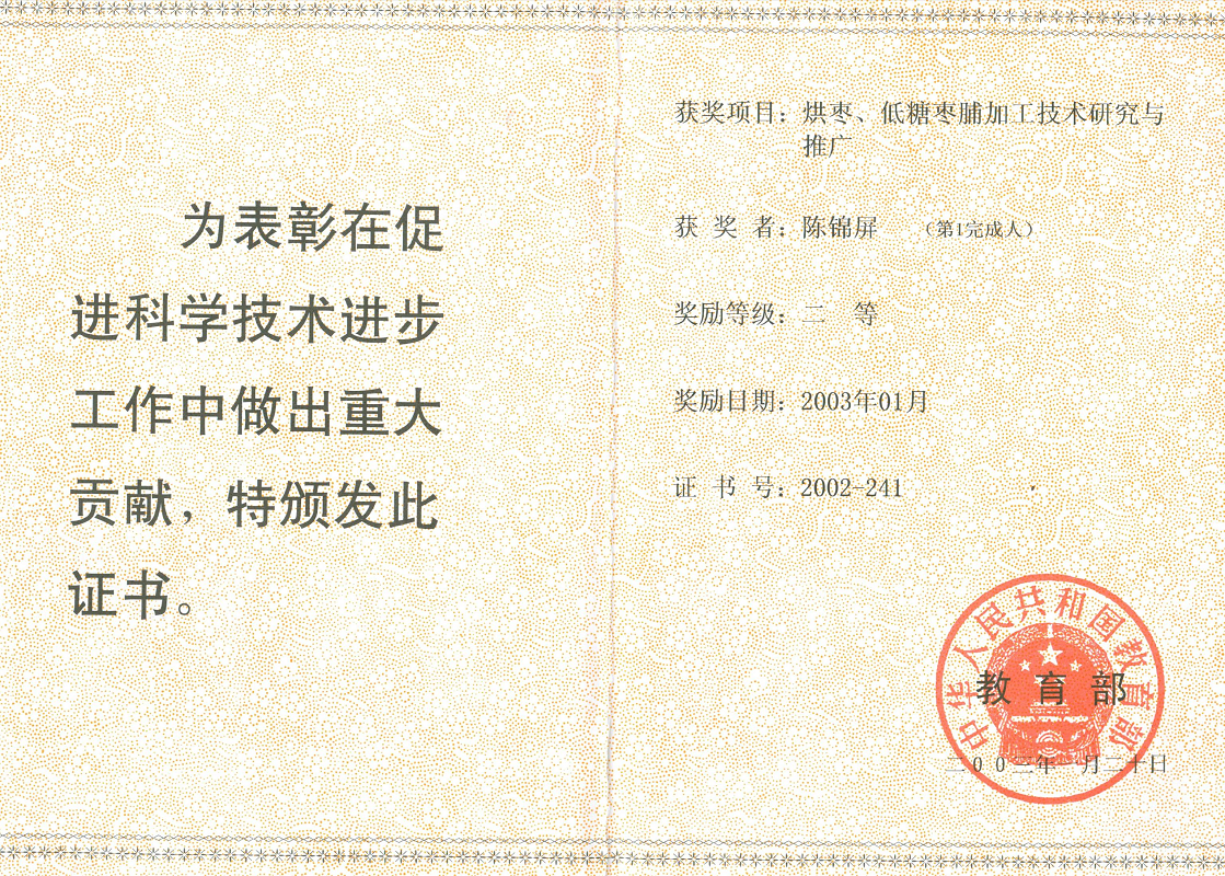 陈锦屏同志,女,汉族,湖南省益阳县人,教授、博士生导师。西北农taptap国际版 毕业后留校,一直从事食品科学与工程学科的教学、科研、生产工作。1985年至1993年任首届西北农业大学食品科学系系主任。1997年调入陕西师范大学,任食品科学系系主任。陕西省委、省人民政府决策咨询委员会特邀委员,陕西省果蔬深加工技术研究中心主任,1991年任教授,1993由国务院学位委员会批任博士生导师。 自1988年开始至今,已培养了42名硕士研究生,16名博士研究生。主讲的“果品蔬菜加工学”,获省优秀教学成果一等奖。先后6次分别获部(省)级“优秀教师”称号。陈锦屏同志主持完成了国家及部(省)级下达的科研课题18项,发表学术论文180多篇。主持的“果品蔬菜人工干制技术研究与推广”课题,在全国15个省市推广应用,产生了显著的经济效益和社会效益。 |